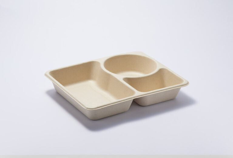 植纖餐盒由木漿、竹漿、甘蔗漿等植物纖維製作而成。最大的特色在於 「無淋膜設計」,不添加任何塑膠塗層,卻能靠物理加壓達到防油防水的效果。